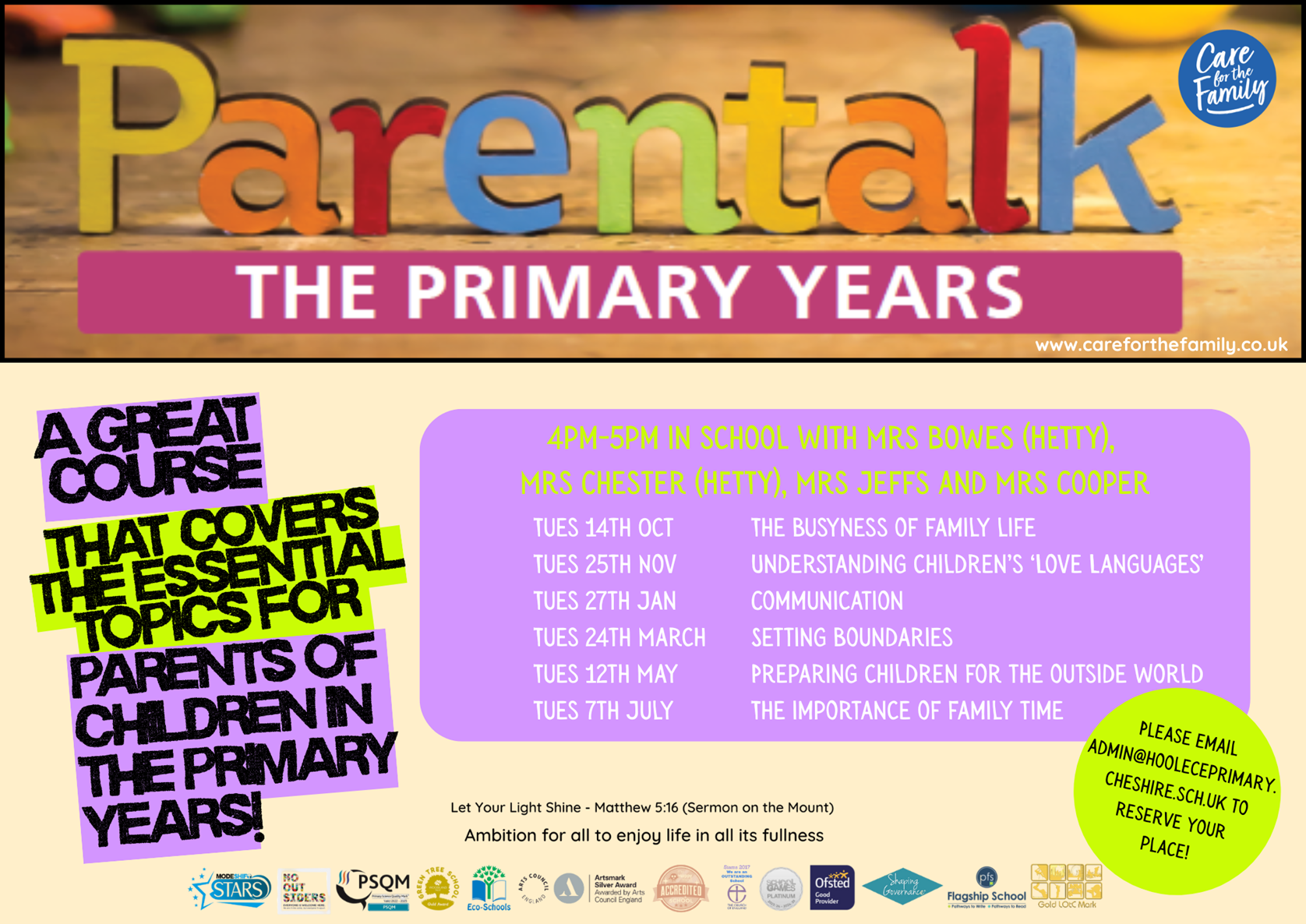 We’re delighted to invite you to a wonderful new parenting course facilitated by staff from HETTY Preschool and Hoole CE Primary School.